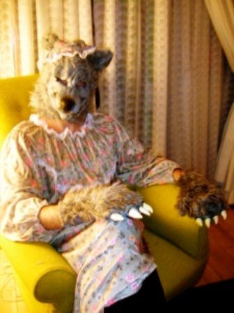 ハロウィーンの日、私は、おばあさんの寝間着を着た“大きな悪い狼”の格好をして、息子のジャスパーとトリック・オア・トリート(お菓子をねだり)に行った。ハロウィーンに顔が完全に隠れる覆面をしたのは初めてだったと思う。世間に対して私の“真のアイデンティティ”を完全に隠してしまう覆面。小さい頃はドラッグストアで売っている、紙製の仮面とビニール製の前掛けのような衣装のセットが欲しかったが、母は手作り衣装を好んで着せた。だから、今回の衣装にはワクワクした。