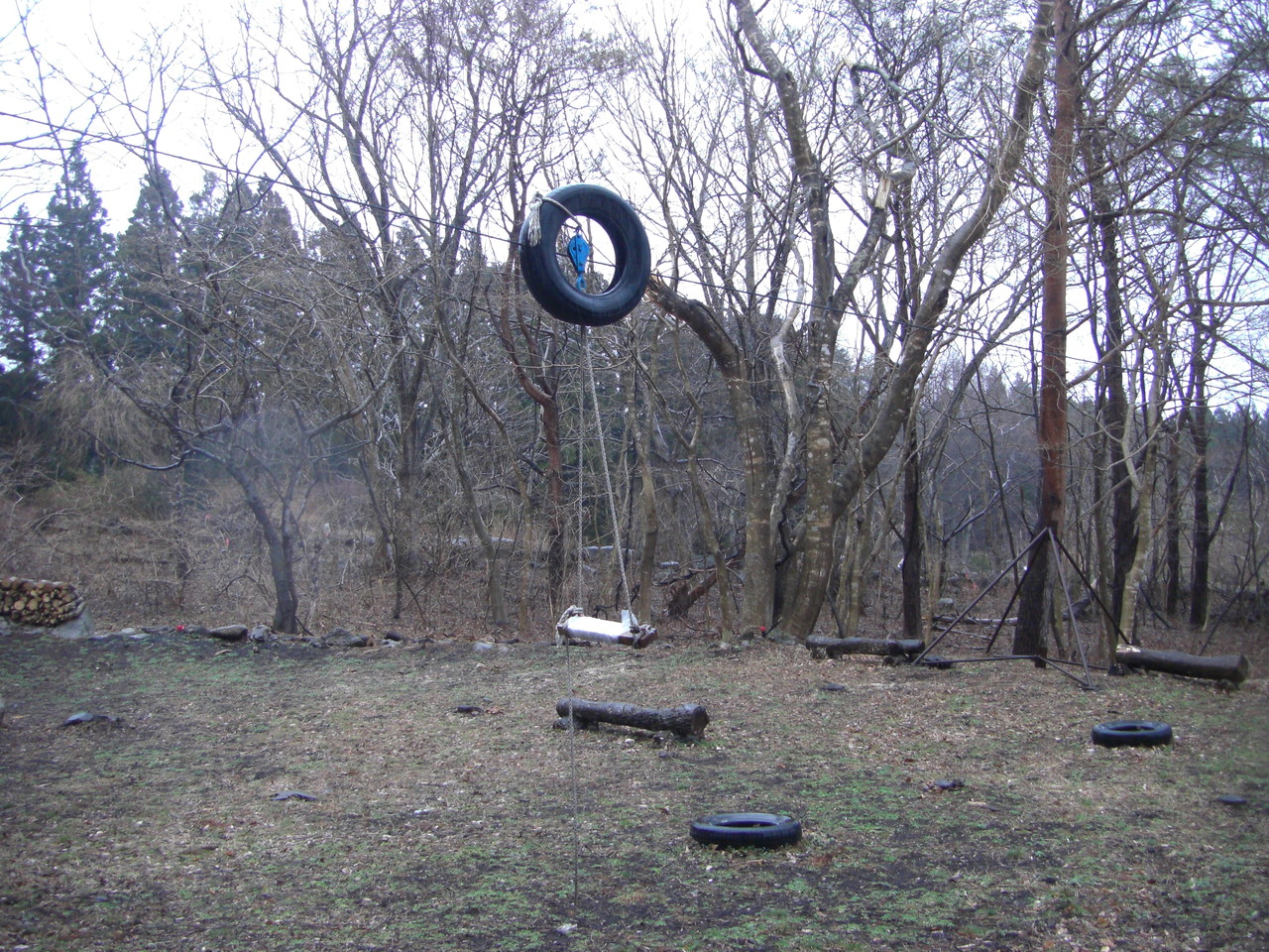 裏にある「キッキの森」では自然を相手に自由に遊べるようにブランコ、ターザンロープ、モンキーブリッジ、滑車ロープ、ツリーハウス等があり、訪れた子供たちが(もちろん大人も!)想像力豊かに遊べるようになっています。