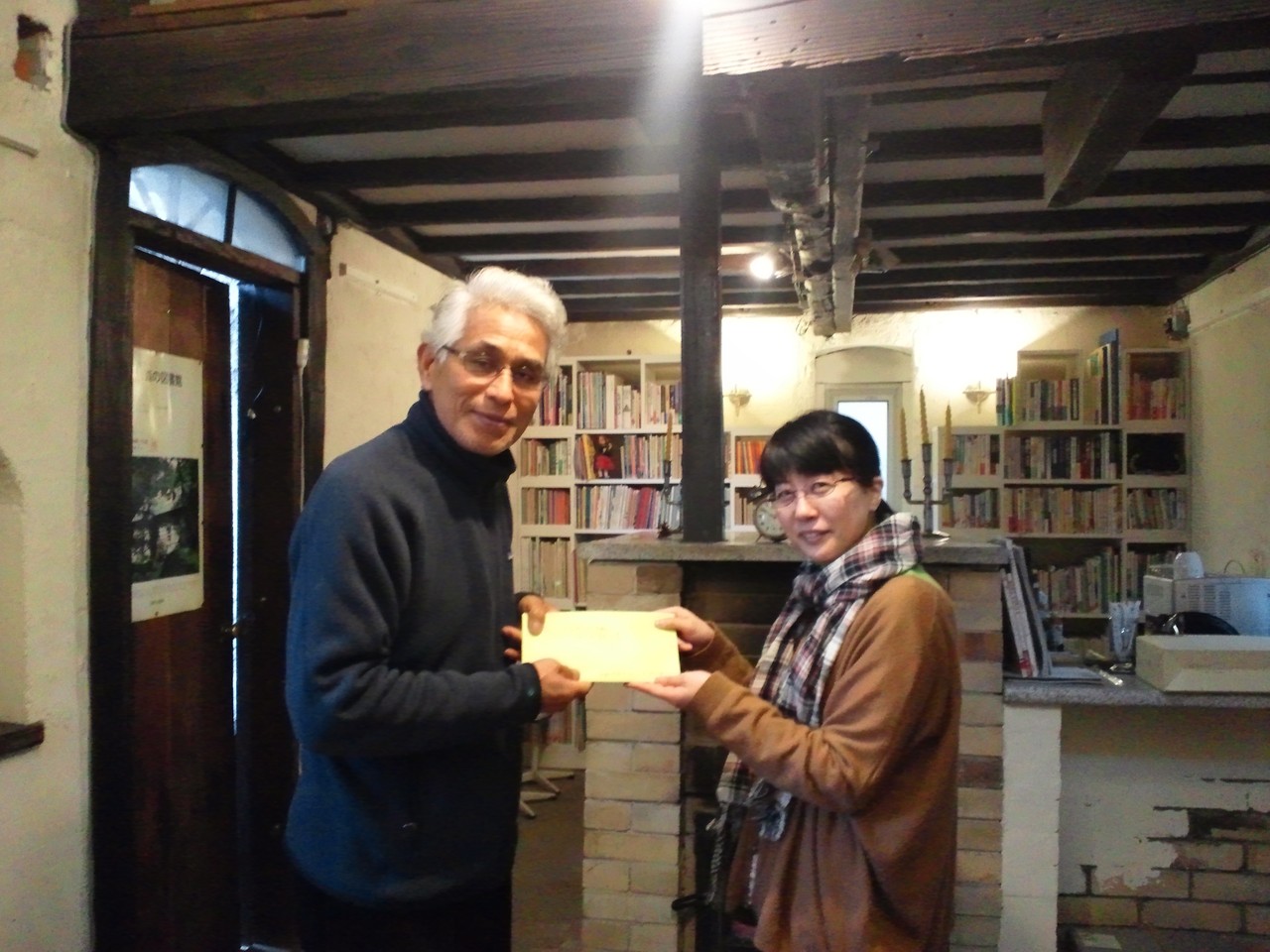 震災後まもなく、濱ちゃんと近くまで行くもたどり着けずそれっきりだったのですが、ずっと心に残っていました。今回、佐々木さんのブログで活動支援金の募集もしていることを知り、2年ぶりに、いろいろな意味で、やっとたどり着くことが出来ました。冷たい風が吹きすさぶ春の嵐の中でしたが、森の図書館の暖炉の火と共に、佐々木さんと奥様が暖かく迎えてくださいました。