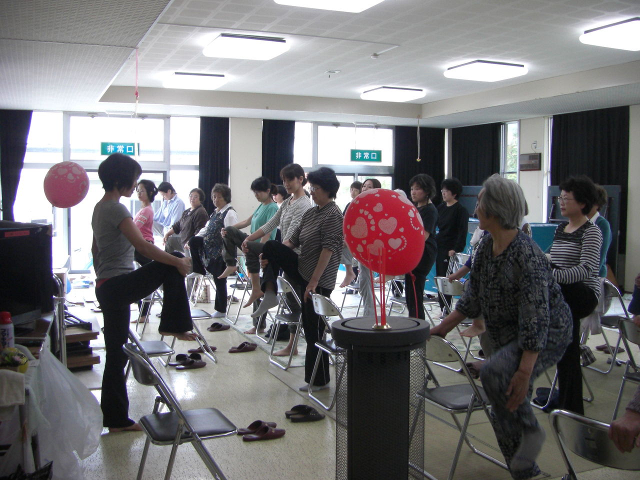 ミカ先生には昼食前にチェアヨガをしていただきました。