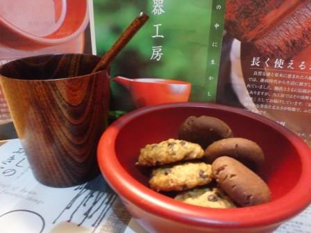 ウサギボタニカさんのマクロビクッキーと八幡平の麹屋「もろみや」さんの甘酒。