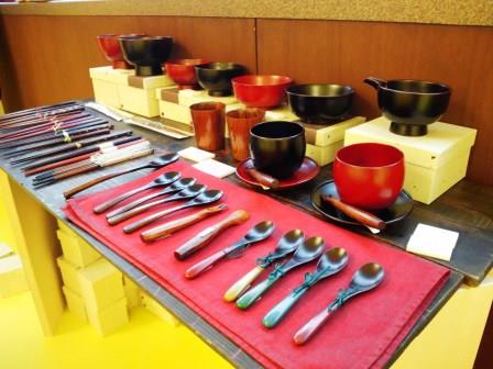会場内にて安比塗漆器工房の漆器販売のほか、